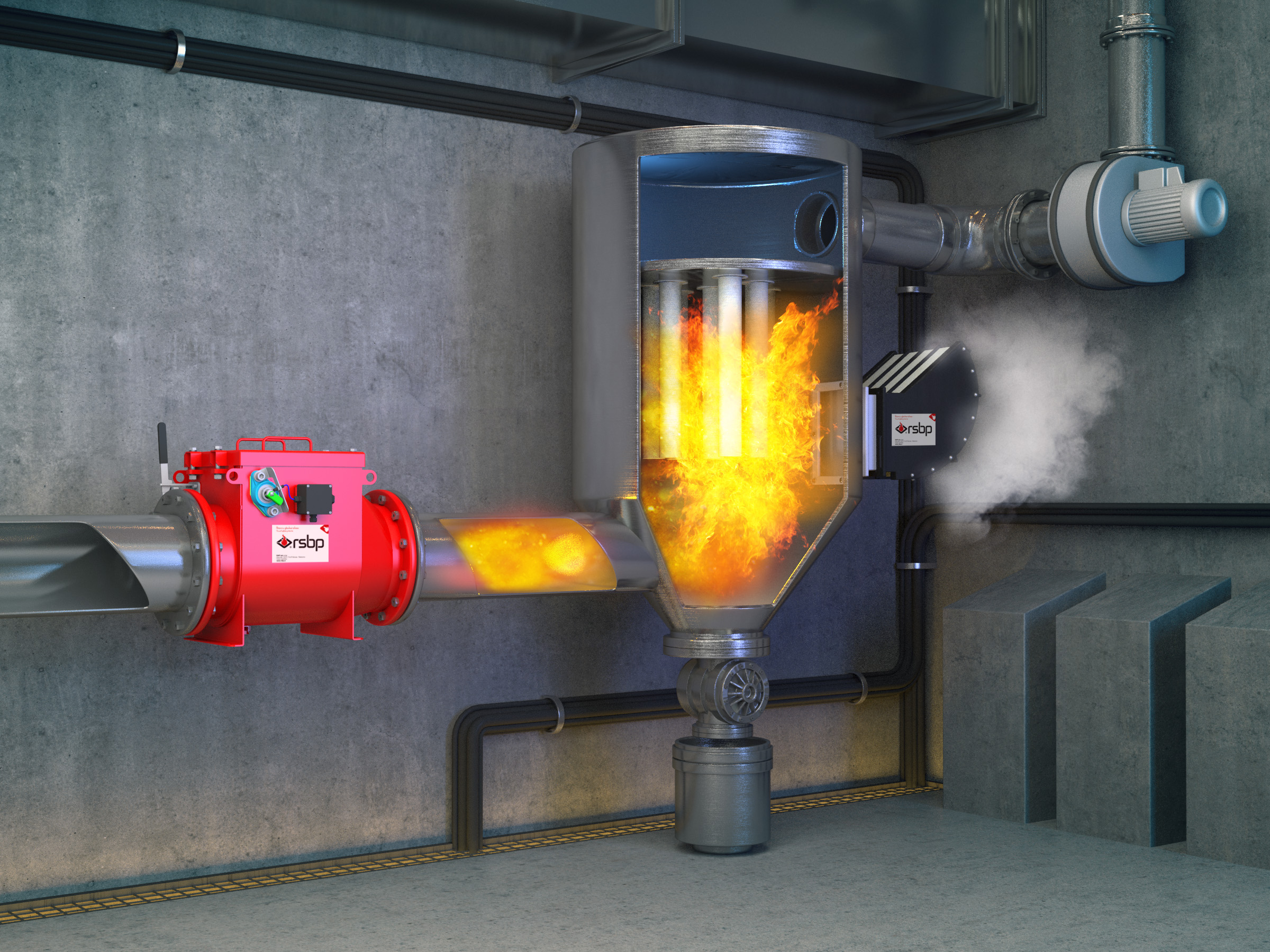 得益於 HRD 系統,爆炸壓力的增加受到控制 - 低於受保護設備的耐壓極限,從而確保其免遭破壞。為了有效保護整個技術,需要在 HRD 系統中添加HRD 屏障,以防止爆炸傳播到技術的後續部分。HRD 系統經過 EN 14373 認證。