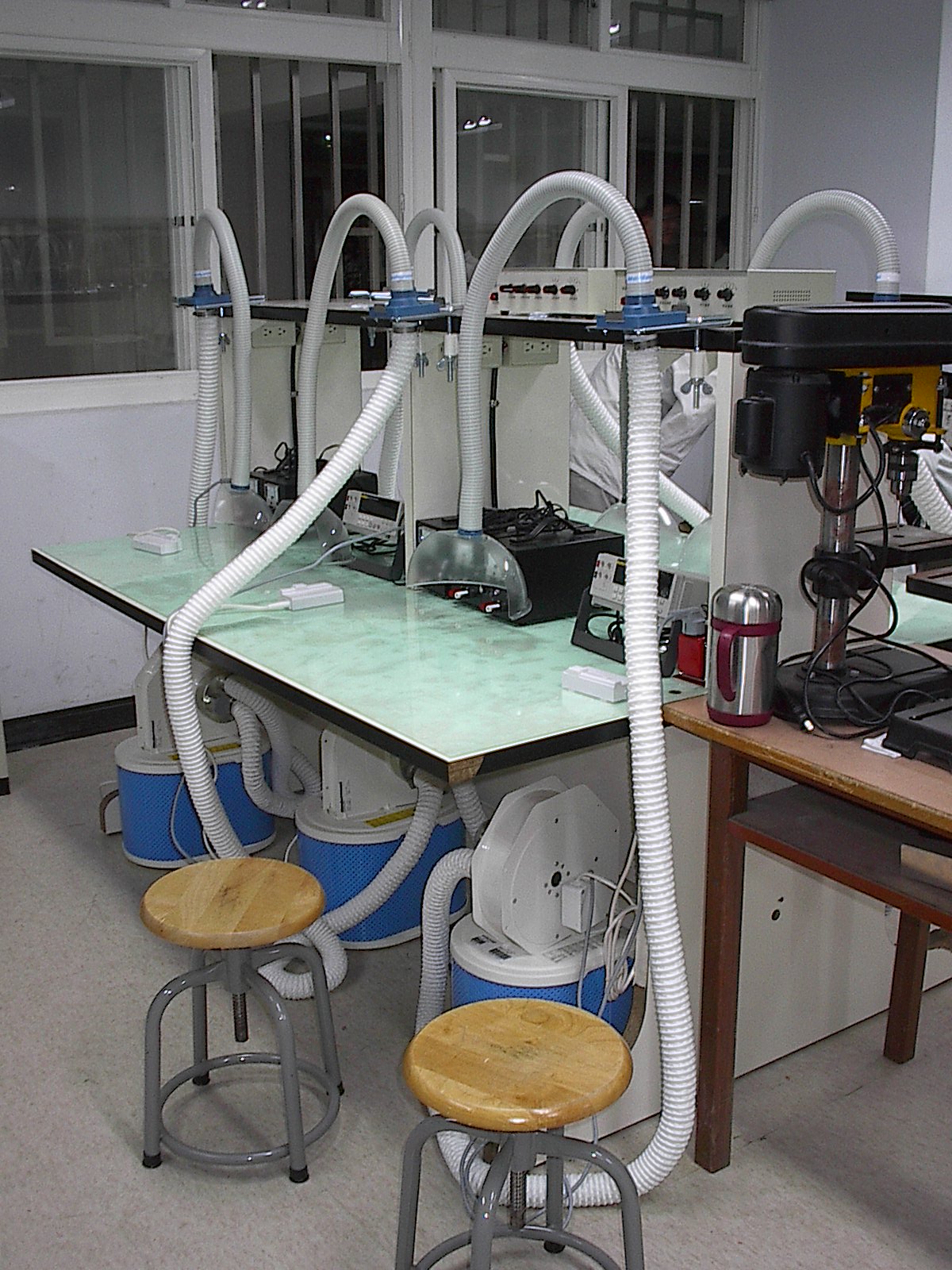 抽排组件包括带有頭罩或吸嘴的活動臂,可調速的風扇和 標准濾芯(颗粒,HEPA或氣體),軟管,連接配件,以及桌面支架 。風機的運行速度可以由调速器調節控制。包括軟管和抽排风罩。氣罩由透明塑料制成,極大的增加了操作时的能见度。