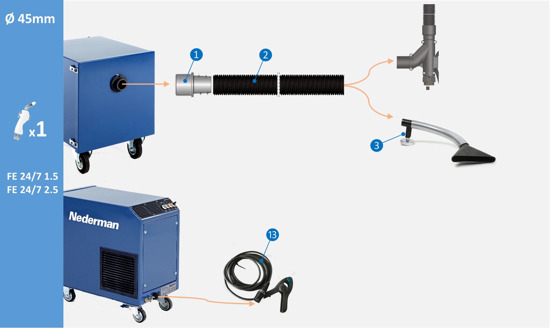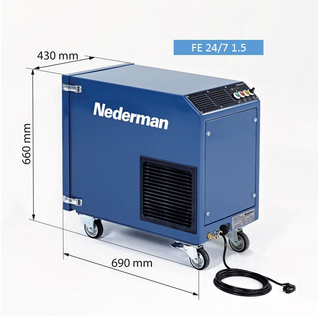 FE 24/7 1.5是一款移動便攜式高真空過濾器,用於連續焊接作業時抽排有害煙塵。FE 24/7 1.5 與集成了抽排裝置的焊槍相連接,可直接從源頭抽排焊接產生的煙塵。消煙器擁有自動清灰功能,高風量的側風道風機,以及作為尼的曼產品的其他優點。