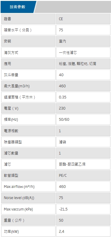 氣動或者電動的工業用真空吸塵器系統,配有單個容器。設計用於短距離收集乾式或者濕式的材料。多功能的真空吸塵器可用於不同的工況和行業。這種真空吸塵器重量較輕,易於操作。