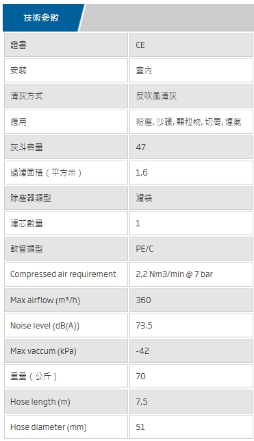 218A工業用吸塵器可很好地收集非常細小的非爆炸性粉塵。乾式真空過濾器和清洗系統更換過濾器的間隔時間長,可大大提高生產率。 壓縮空氣驅動的噴射器可產生高氣流,高效抽取灰塵和細小粉末。為提高性能,集塵器運行時使用獨立的空氣冷卻。過濾前,對灰塵進行有效的氣旋預分離。集塵器的穩健設計使得設備可在粗選條件下安全運行,大輪子便於運輸。容器方便清空。也可使用塑料集塵袋。