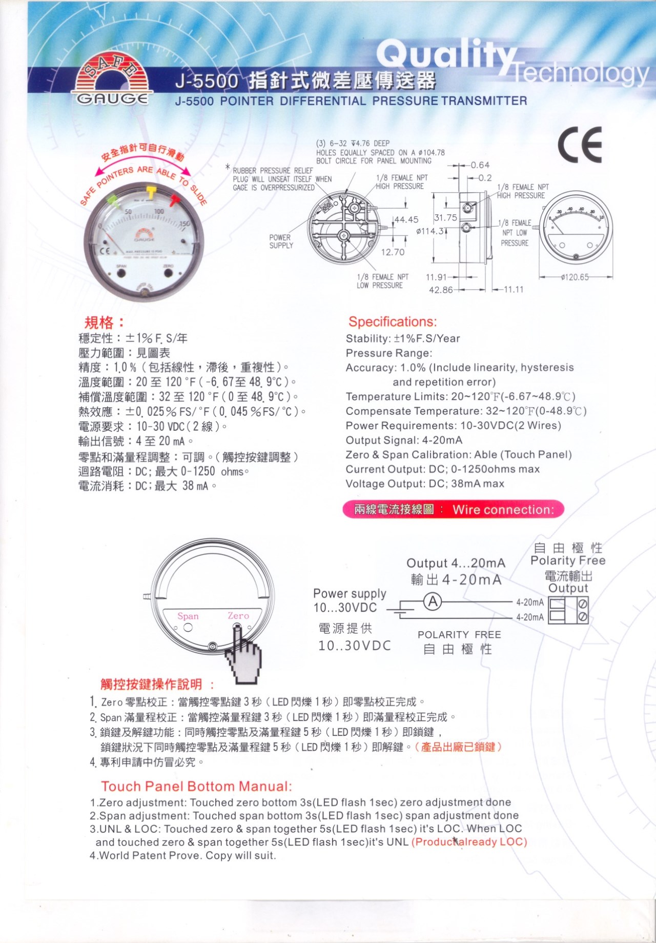 壓差表示利用無摩插的磁體螺旋運動,以橡膠膜片作為敏感元件而進行測量工作的彈性壓力錶,他能利用指標迅速指示出被測氣體的壓力,無論是正壓,負壓或差壓,此設計具有防震,搖動和過壓的功能,而且錶內無需充注液體,也就沒有氣化,凍結意味補水的問題出現。